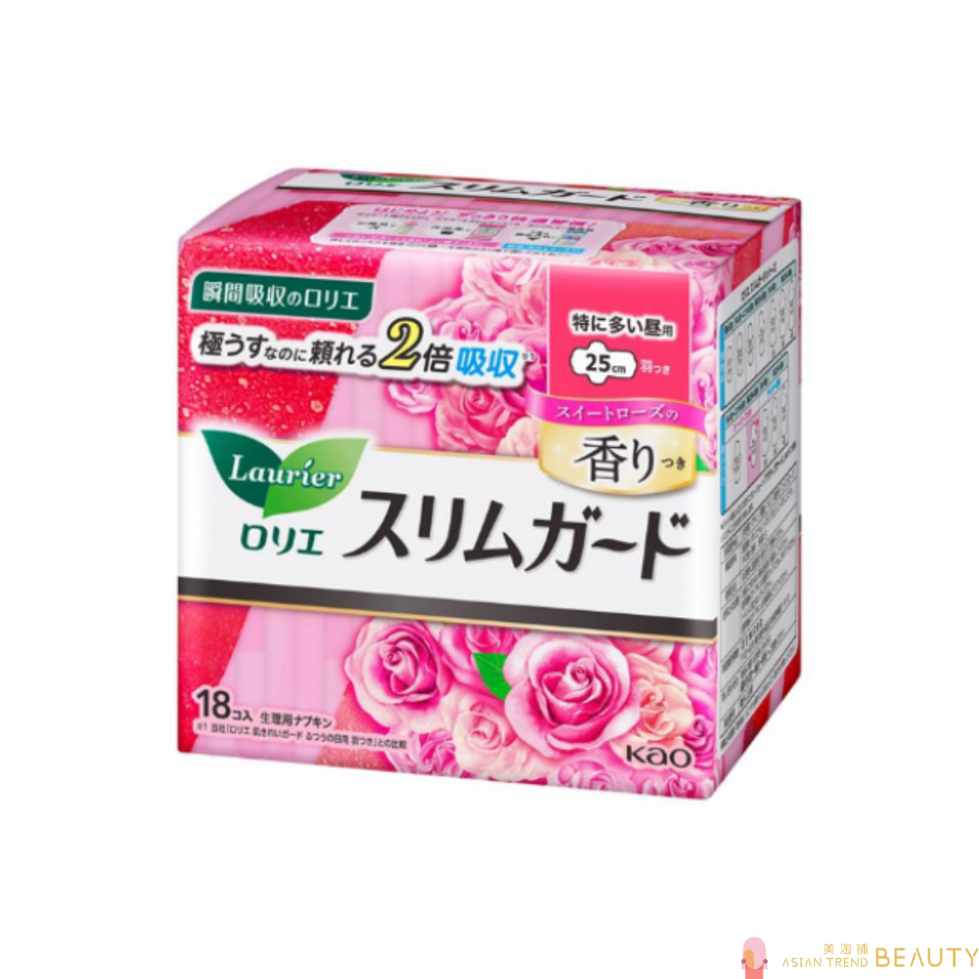 FAQs about Kao Laurier Slimguard Day Pads With Wings 25cm 18pcs Rose
