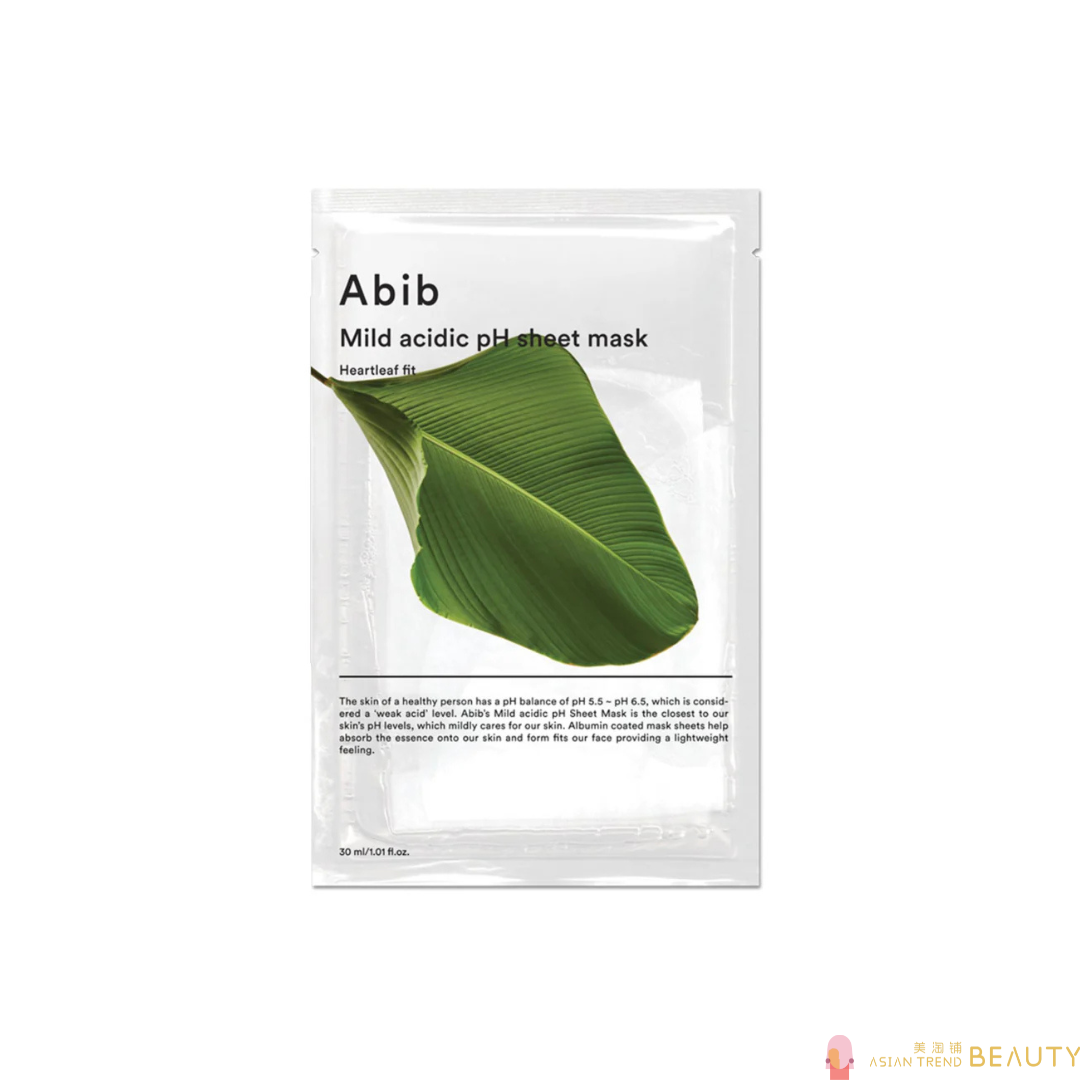 Abib Mild Acidic pH Sheet Mask Heartleaf Fit is a sheet mask drenched in a crystal clear essence containing Houttuynia Cordata Extract (Heartleaf) found in Jiri Mountain to calm stressed and dry skin.